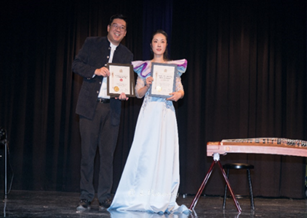 ![]() | ![]() | 音乐会开始前,阿尔伯塔省省议员Nathan Ip到场致辞,并为古筝演奏家马文驰颁发荣誉,感谢她长期以来在推广中华文化、服务社区方面所作的努力。他表示,这类文化活动有助于拉近不同族裔之间的距离,让社区更加团结。 |