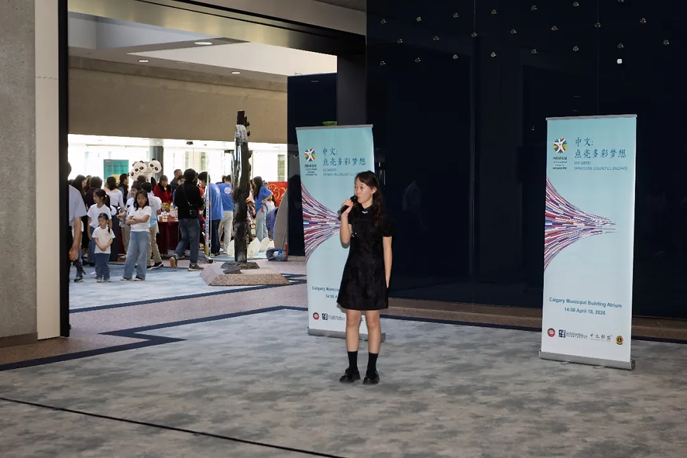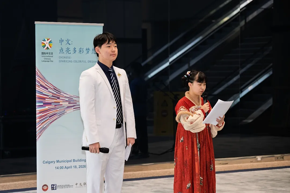2026年4月18日,卡尔加里市政厅热闹非凡,平日严肃的政治中心成了中文乐园。中国驻卡尔加里总领馆携手华埠狮子会及多家公立学校、中文学校、青少年社团、艺术团,在这里举办2026年“国际中文日”庆祝活动。
